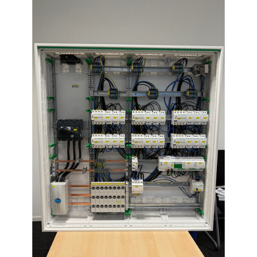 Sie enthalten wichtige Komponenten wie Sicherungen, Leistungsschalter, Steuerungen (z.B. Smart Home), Messgeräte, Klemmenund Überspannungsschutz. Je nach Anwendung werden sie individuell geplant und gebaut.